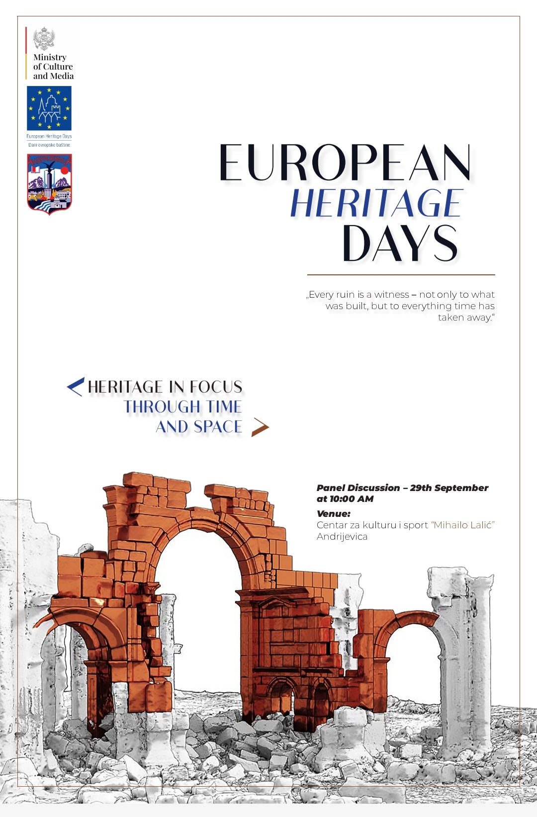 ,,Baština u fokusu – dijalog kroz vrijeme i prostor”; podržan od Ministarstva kulture i medija u okviru projekta Dani evropske…